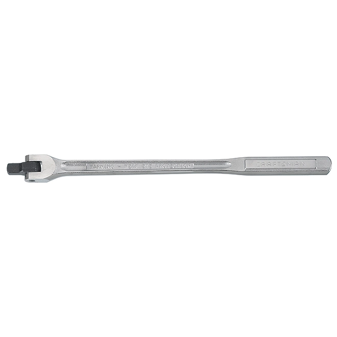 The Craftsman® breaker bar is designed to procure added leverage for more torque. Fabricated in steel, features large markings for quick accessory identification and a chrome finish fully polished ensuring corrosion resistance. The bar with a 1/2” (13 mm) drive measures 15” (38 cm), meets or exceeds ASME specifications and is backed by a lifetime warranty.