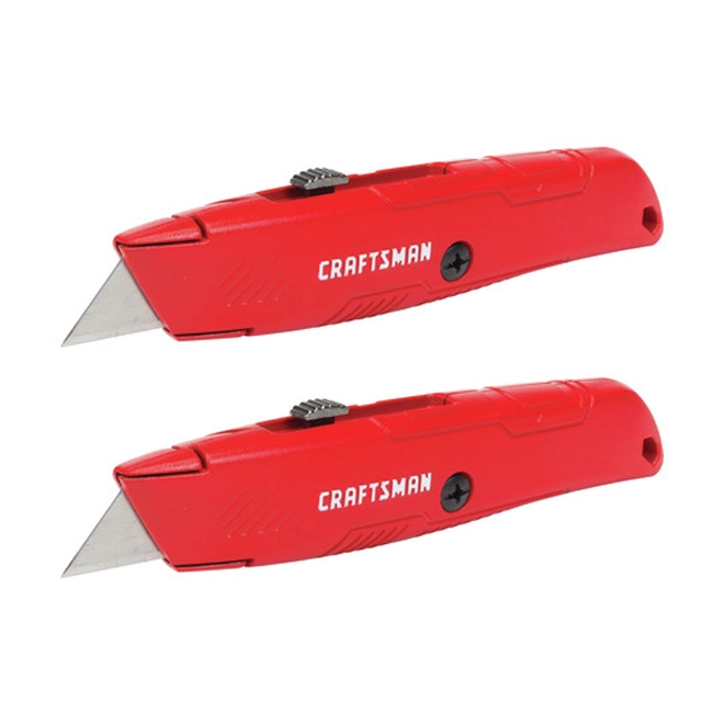 This pack of 2 Craftsman® utility knives offers a strong blade retention system, allowing for safe and efficient heavy-duty cutting, as well as a swing-out blade storage for easy access to replacement blades. The blade is retractable in 3 positions for variable cut depth. Includes 6 utility blades. This product is backed by a limited lifetime warranty.