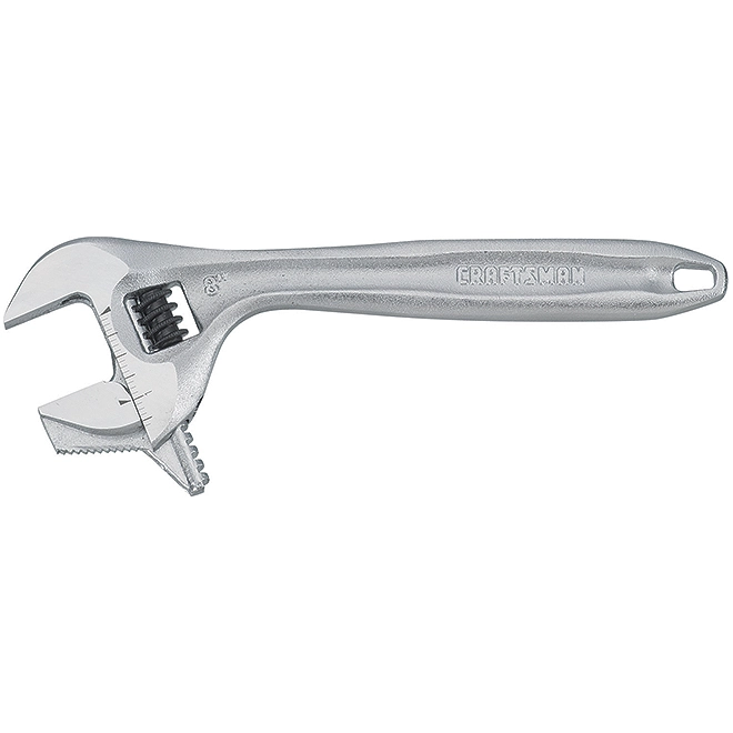 This Craftsman® adjustable wrench measures 8″ long and has a fully polished finish to resist corrosion. Its reversible jaw allows you to work on pipes and rounded bolts. It has a metric and SAE scale to easily measure the size of the workpiece. Lifetime warranty.