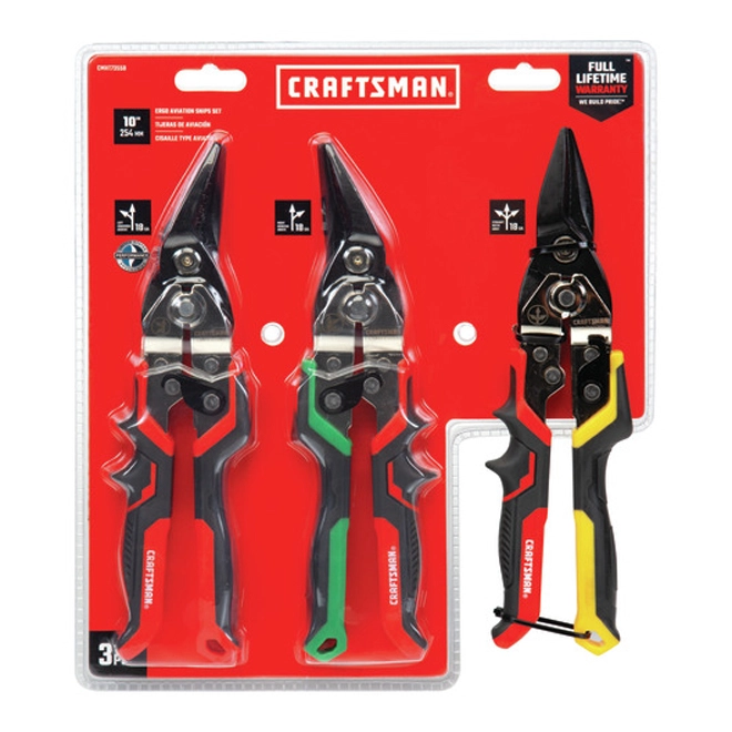 Craftsman Aviation Snips – Right Cut – Red and Green – Pack of 3
