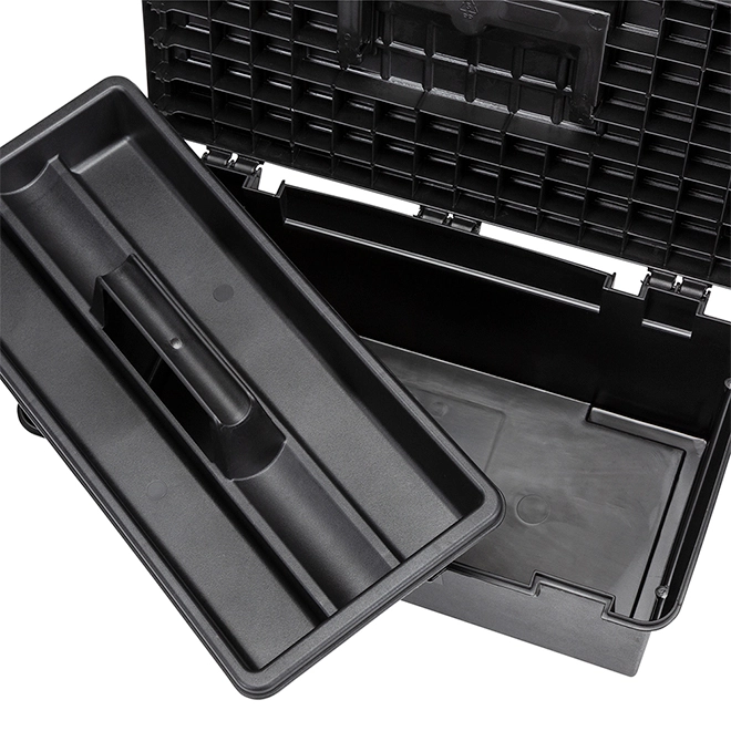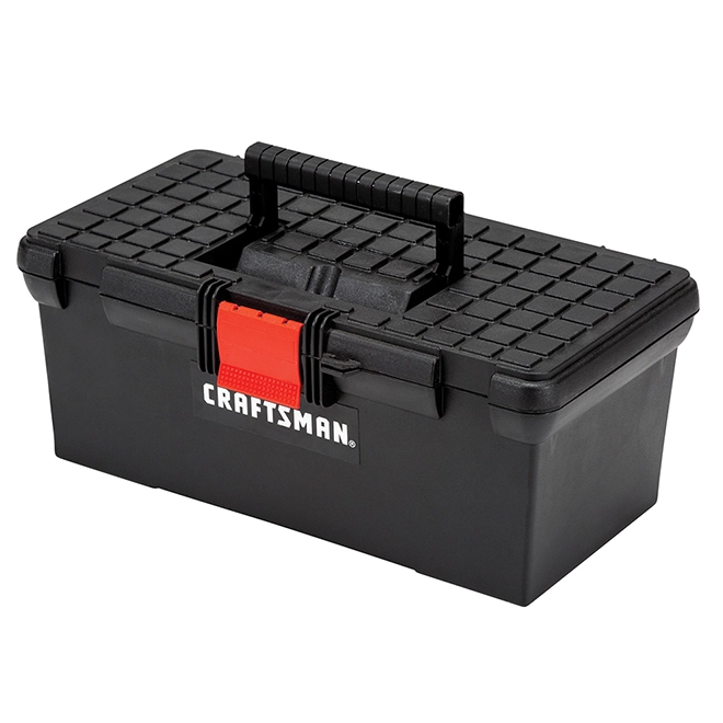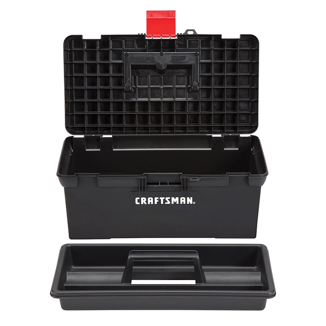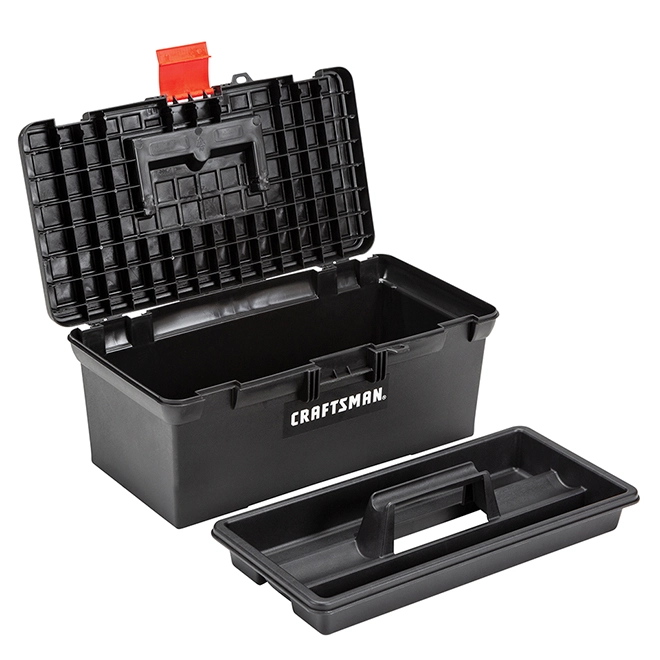 Keep your supplies neat and organized with this classic toolbox by Craftsman®. Made of sturdy material, it comes padlock ready (sold separately) for added safety and an attached collapsible handle. With its spacious interior, this toolbox also includes a removable tray for quick access to smaller tools.