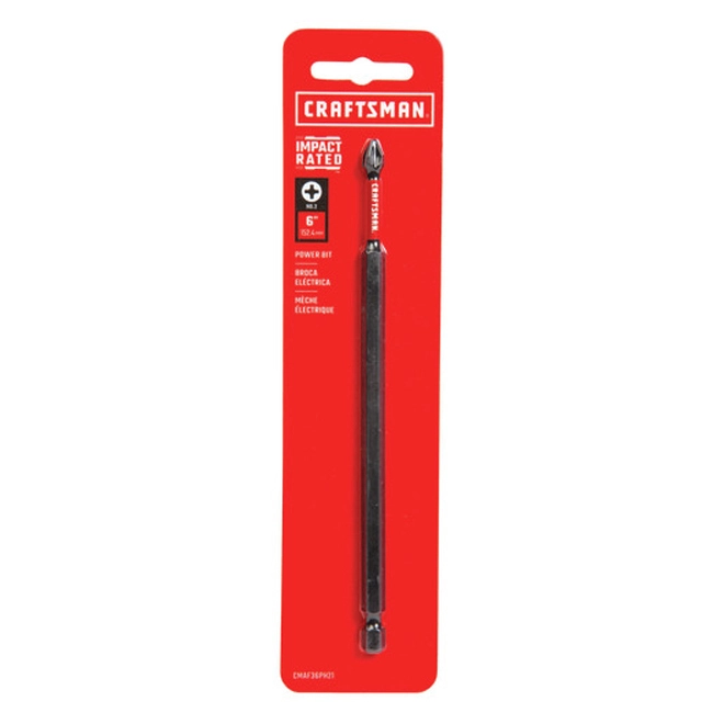 Craftsman Impact Rated Screwdriver Bit – Phillips #2 – 6-in – Black Oxide S2 Steel