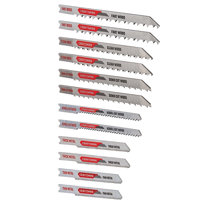 Use this set of Craftsman jig saw blades to make fast cuts on several materials. The set comprises 12 blades for use on different applications. Featuring a bi-metal design, these U-shank jig saw blades can make sharp and fast cuts on both metal and wood. These blades can be used with U-shank jigsaws.