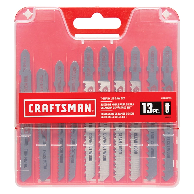 Craftsman Jigsaw Blade Set – Assorted Lengths – T-Shank- High Carbon Steel – 13-Pack
