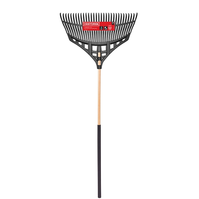 The Craftsman ultra-light leaf rake with wood handle and comfort grip is an optimized garden tool. The shape and the flexibility of the tines allow you to rake leaf 45% more efficiently. The foam grip provides better comfort and prevents blisters. Backed by a 15-year limited warranty against defects in the material or workmanship.