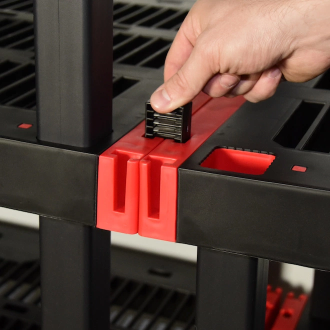 For a neat and organized garage or workshop choose the Craftsman modular storage shelf. Using the provided hardware, you can connect multiple units together in any direction for layout customization and added stability. For added security, the provided wall mount bracket helps keep the unit stationary and minimizes the risk of tipping. Made of plastic, the robust unit has 5 shelves capable of supporting 250 lb each, and measures 72-in high x 40-in in wide x 24-in deep.