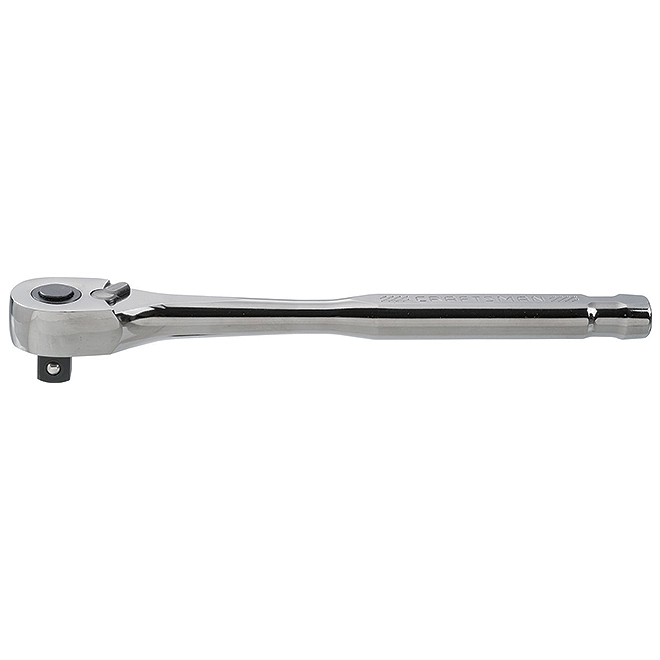 This 1/2″ drive ratchet by Craftsman® features a gunmetal chrome finish for superior rust resistance and a 120 teeth dual pawl mechanism. Also, it includes a special quick-release feature with a reversing lever, allowing for easy one-handed operation. Lastly, it meets or exceeds ASME specifications. This product is backed by the Craftsman® full lifetime warranty.