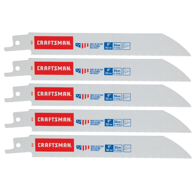 Craftsman Reciprocating Saw Blades – Bi-Metal – 6-in L – 24 TPI – Metal Cutting – Straight Blade – 5 Per Pack