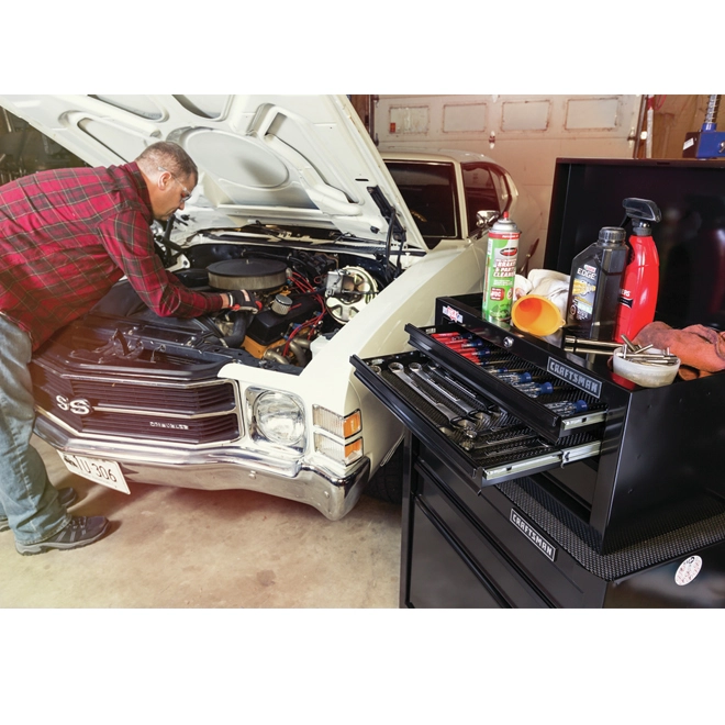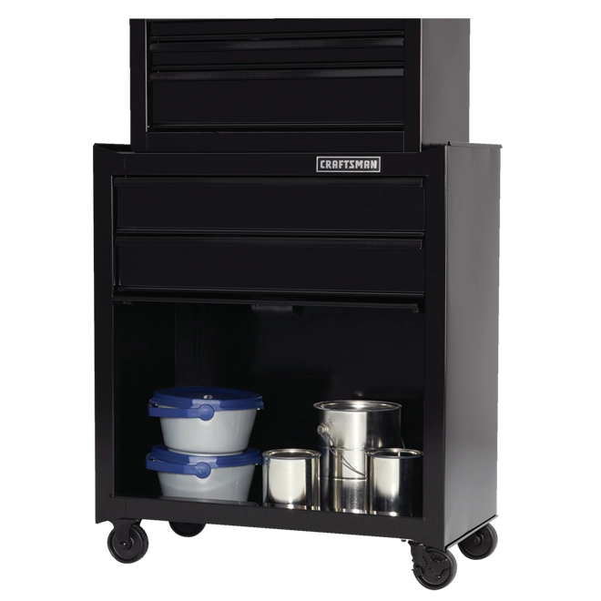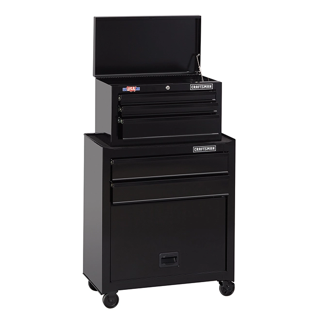 The Craftsman 5-drawer standard duty ball-bearing tool center offers an ideal storage solution for tools and supplies with a thoughtful design and at a great price. With separate top and bottom chests, the tool center offers drawers in varying sizes to store hand tools, power tools, parts and everything in between. The bulk storage area on the bottom offers plenty of space for larger gear such as welding helmets and circular saws. The 5-drawer standard duty ball-bearing tool center features ball-bearing slides, hinged supports, caster wheels, and an external keyed locking system. You get easy, quick access to the tools that you use most frequently. With a simple twist of a key, you have a peace of mind about the security of your gear.