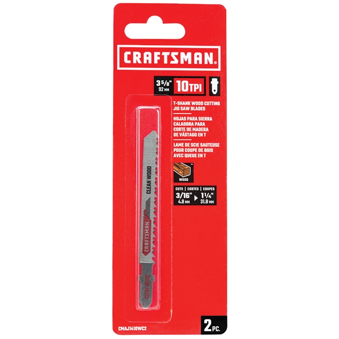Craftsman T-Shank Clean Wood Jigsaw Blade – 10 TPI – High-Carbon Steel – 3 5/8-in L – 2 Per Pack