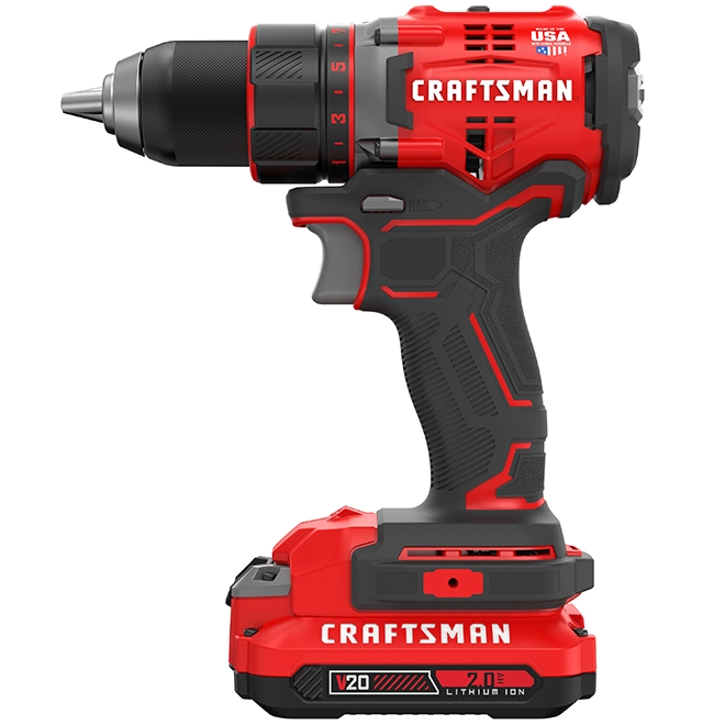 Craftsman V20 Cordless Drill Kit with Batteries and Charger – Brushless Motor – LED Light – Variable Speed