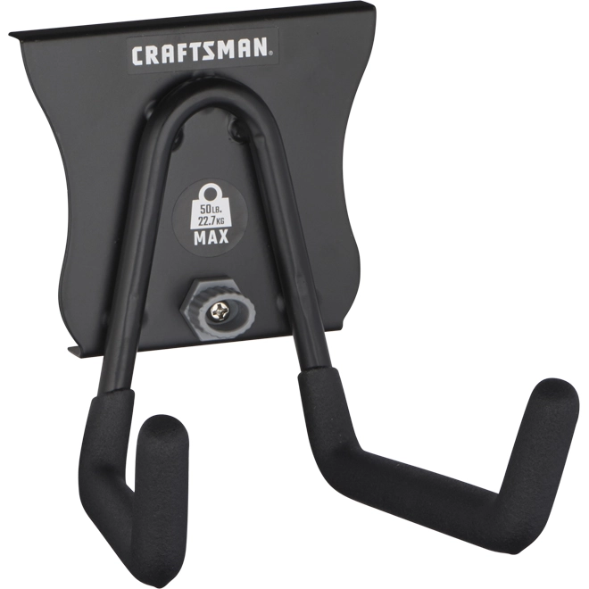 The Craftsman® short hook mounts to VersaTrack rail to create a flexible and convenient storage system. Its Hooktite latching system secures the hook to the rail so that the hook will stay attached to the wall when you remove your stored item. Two short, sturdy hooks are useful for holding a wide variety of items. The heavy-duty steel hook is coated with a non-slip material that prevents scratches and corrosion. This product is backed by a 1-year limited warranty.