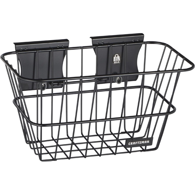 The Craftsman® wire basket mounts to the VersaTrack rail to create a flexible and convenient storage system. Its Hooktite latching system secures the hook to the rail so that the hook will stay attached to the wall when you remove your stored item. Two mounting brackets hold the basket level. It can hold cans, bottles, gloves, rags and any other odds and ends. The open wire design allows visibility to stored items and it can support as much as 35 lb. This product is backed by a 1-year limited warranty.